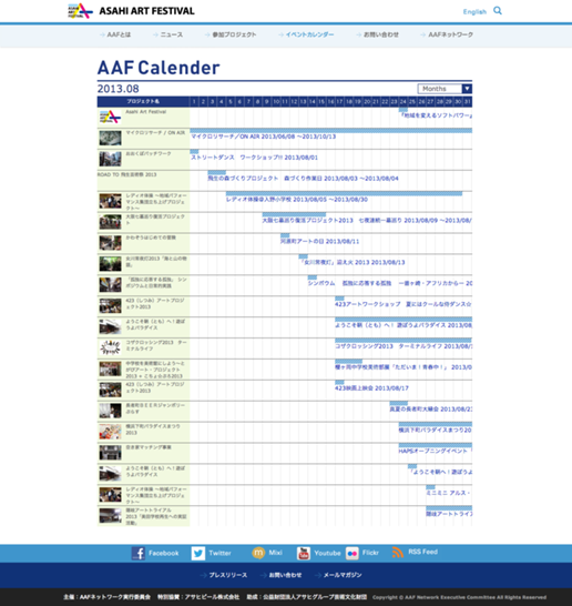 Events of the Asahi Art Festival are now displayed as an interactive calendar.